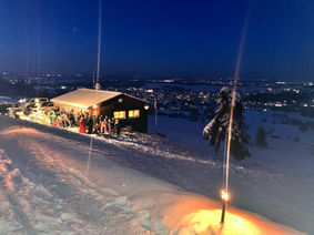 Nach einem letzten Lied und kurzen Skibindungsproblemen beim Kecht Ruprecht schwungen der Nikolaus und sein Begleiter den Hang hinunter auf ihren Skiern in die Winternacht ab.